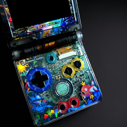 Nintendo GBA SP Game Boy Advance SP Pokémon Rainbow Magikarp Custom Mod Console