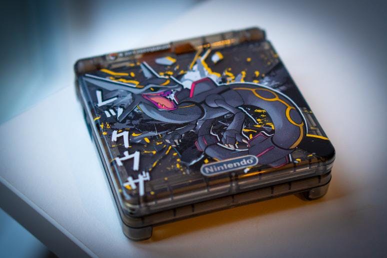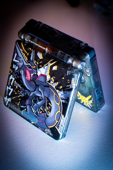 Featuring a crystal black shell with a Rayquaza inspired designed by SuperGusiLand!